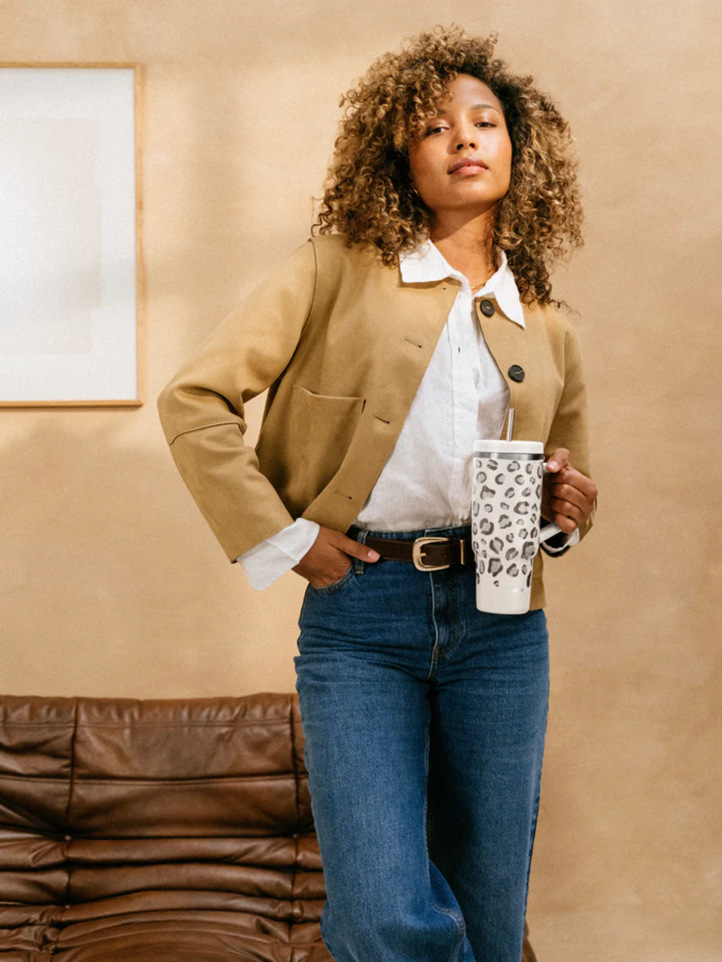 Travel Cup Isotherme Wild Camel łączy stylowy design inspirowany lampartami z funkcjonalnością. Pojemność 900 ml i zintegrowana słomka ze stali nierdzewnej sprawiają, że napoje pozostają lodowato zimne przez 48 godzin, chłodne przez 12 godzin lub ciepłe przez 6 godzin - idealny do biura, podczas treningu lub w podróży.