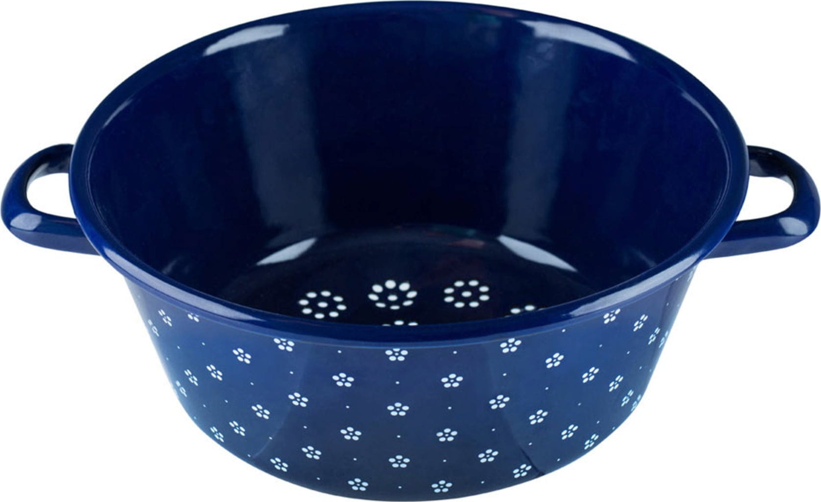 Cedzak do warzyw firmy RIESS prezentuje emalię w nowej odsłonie - dzięki dirndl designowi gotowanie staje się świąteczną przyjemnością! Naczynie kuchenne w śmiałym kolorze niebieskim i białych kwiatach jest zaprojektowane z dziurami w kształcie kwiatów. Stylowy pomocnik w każdej kuchni - od mieszkania studenckiego po dom wiejski!