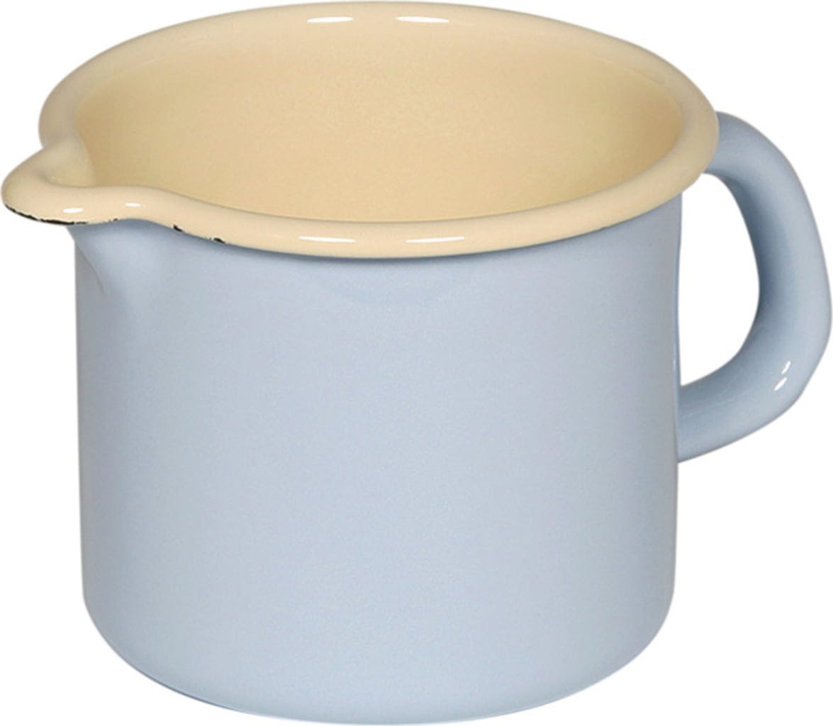 Emaliowany kubek ma ładny wygląd, który doda uroku każdej kuchni, a ponadto jest bardzo praktyczny. Styl z lat 50! Kubek o pojemności 0,5 l, z zewnątrz w jasnoniebieskim kolorze, w środku biały. Odporny na zadrapania i zarysowania oraz bezpieczny dla osób z alergią na nikiel.