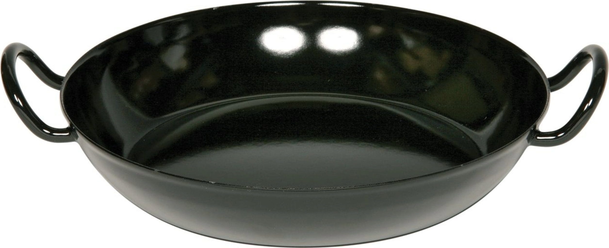 Wyczaruj pyszne dania i podawaj je bezpośrednio na stół! Patelnia dla smakoszy nadaje się do wszystkich rodzajów kuchenek, a nawet może być używana na otwartym ogniu. Posiada dwa praktyczne uchwyty, dzięki czemu można ją łatwo przenieść z płyty kuchennej na stół. Ponieważ jest wykonana z odpornej na przecięcia i zarysowania czarnej emalii, może być również używana do krojenia nożem.
