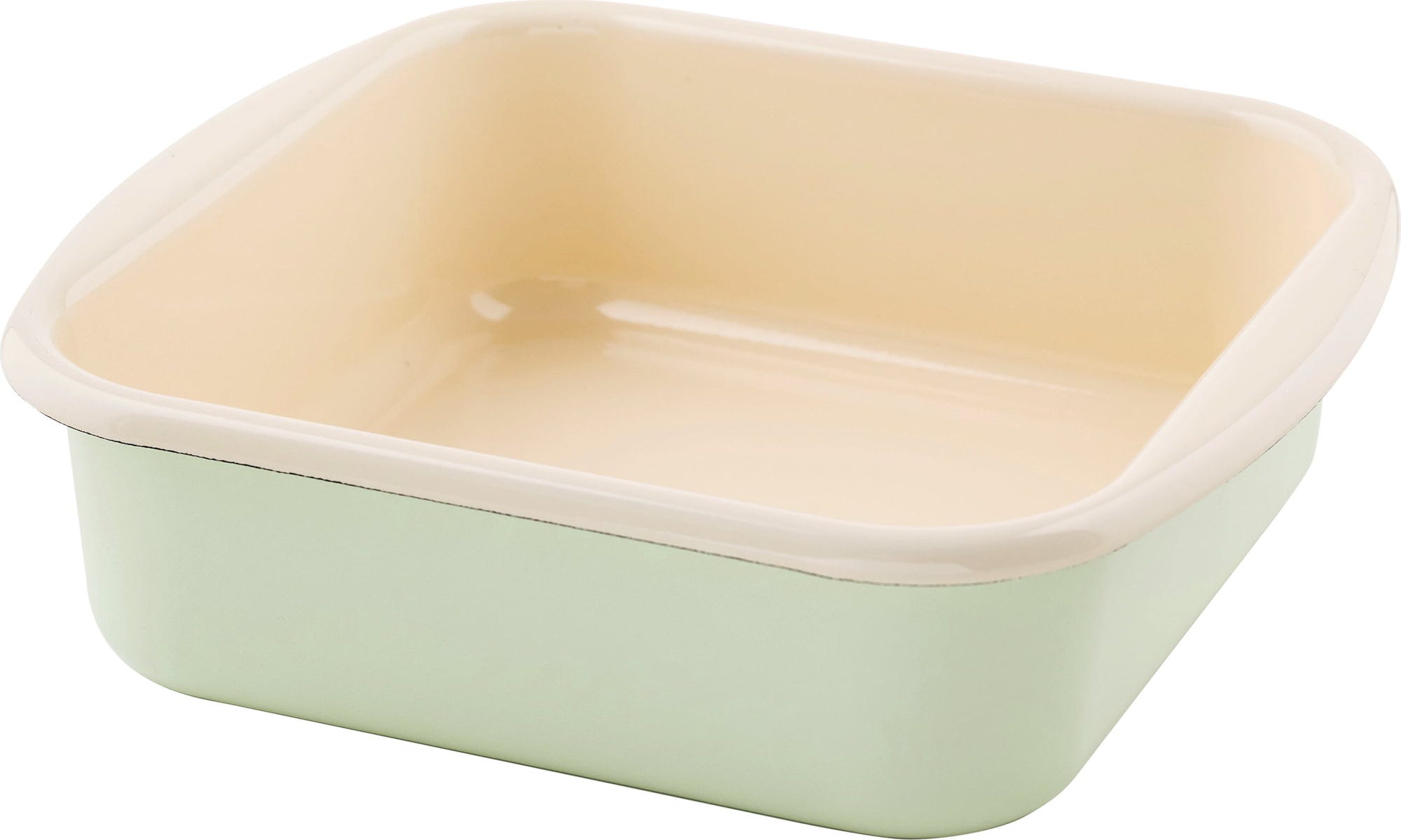Pojemnik do zapiekania w pastelowej zieleni RIESS jest idealny do mniejszych pieczeni, zapiekanek, drobiu lub kwadratowych ciast i deserów. Emalia jest łatwa do czyszczenia, solidna, odporna na cięcia i zarysowania.