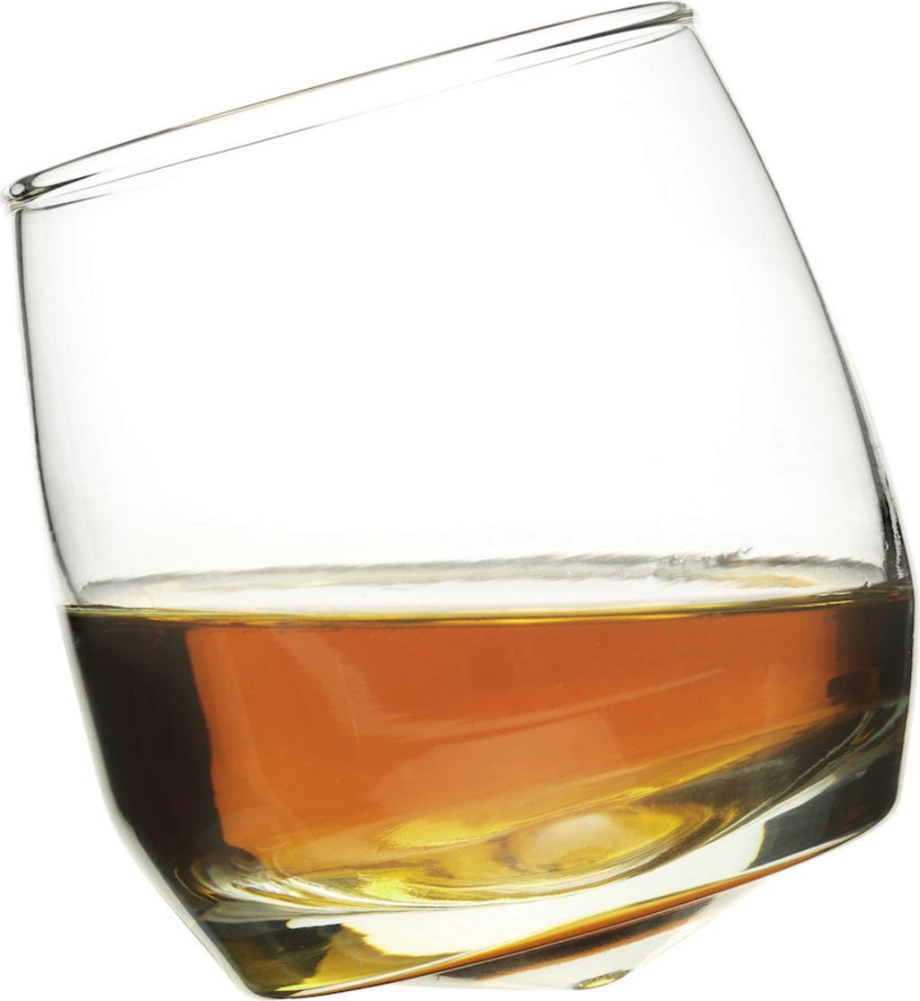 „Bar Rocking Whisky Glass” jest ręcznie dmuchany i jest klasycznym kieliszkiem do whisky. Okrągłe dno szklanek pozwala im delikatnie toczyć się w przód iw tył.