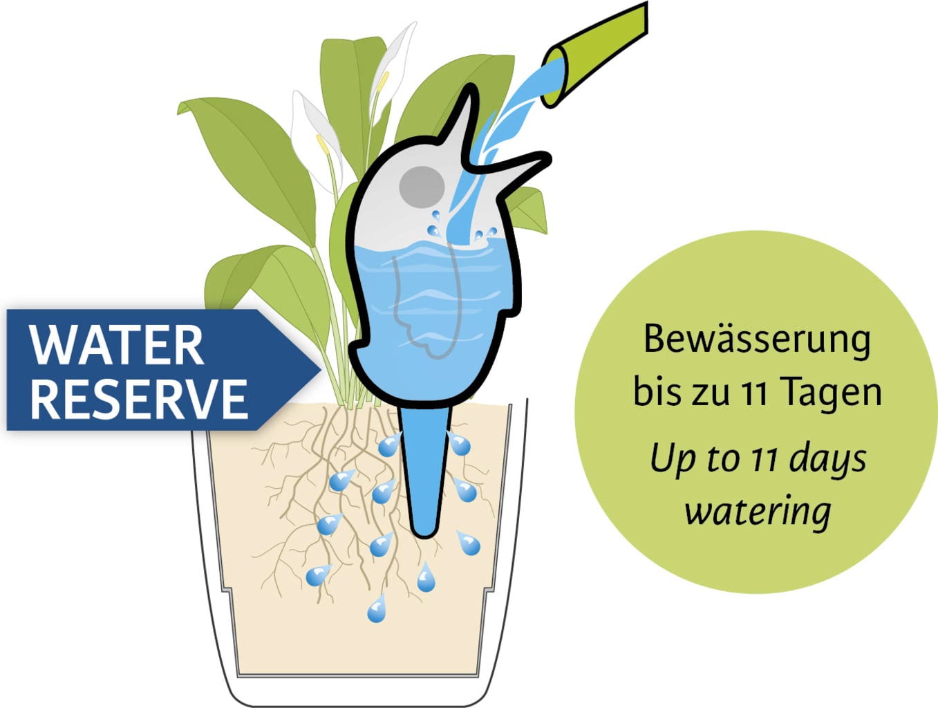 Ten uroczy plastikowy ptaszek to coś więcej niż tylko ładna dekoracja. Wystarczy umieścić go po napełnieniu woda w ziemi, a niezawodnie dostarczy wilgoci ulubionym roślinom. Czy to na balkonie, patio, w ogrodzie, czy nawet w salonie - Bördy dostosowuje się do każdego miejsca i zapewnia roślinom zawsze wystarczającą ilość wody.