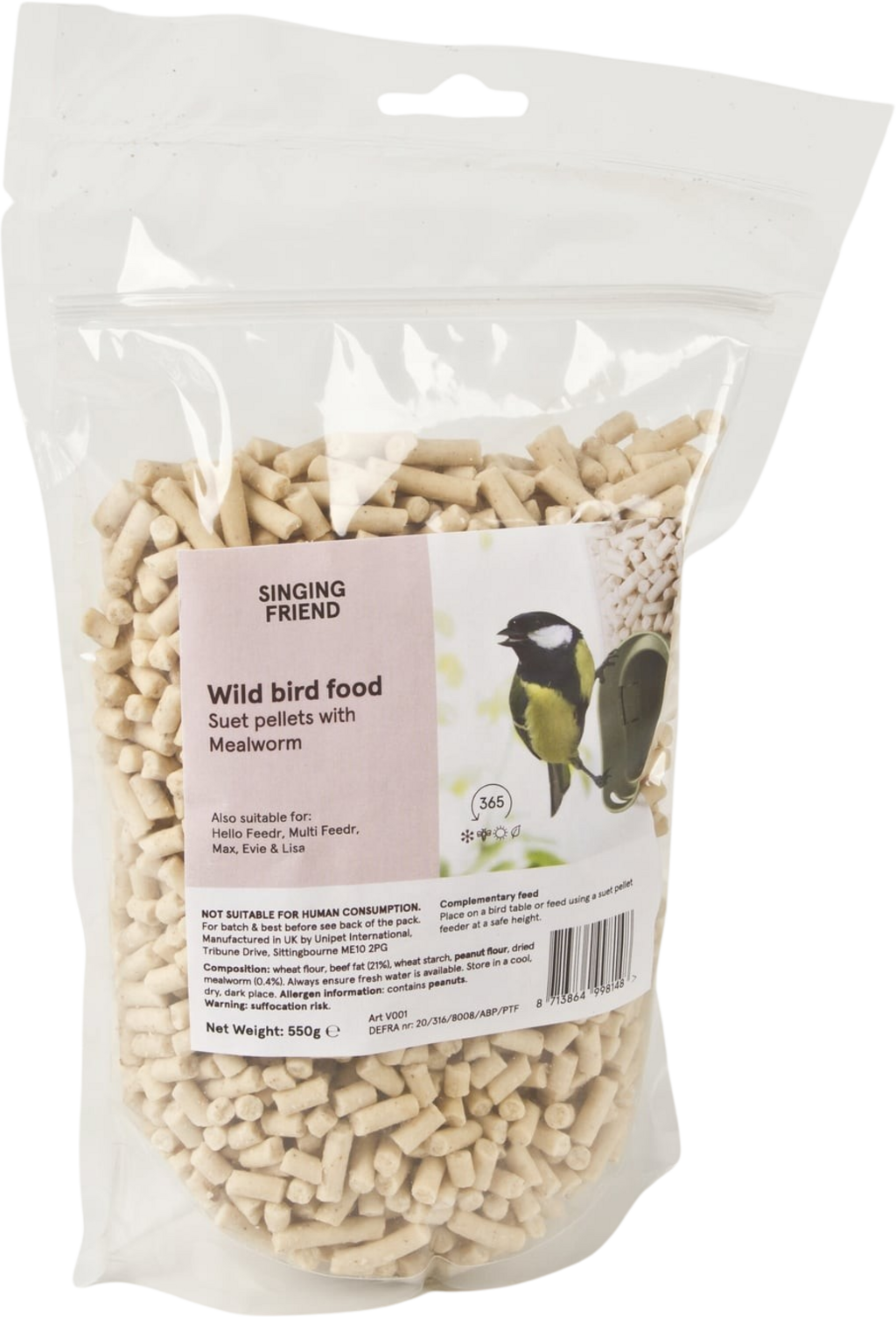 Te granulki mącznika młynarka są idealne do karmników Singing Friend i stanowią cenne źródło pożywienia dla ptaków odwiedzających ogród w zimnych porach roku.