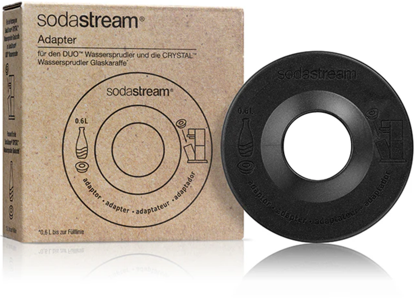 1. Umieść adapter stroną z etykietą skierowaną do góry w pojemniku na butelkę ekspresu do wody gazowanej SodaStream DUO.