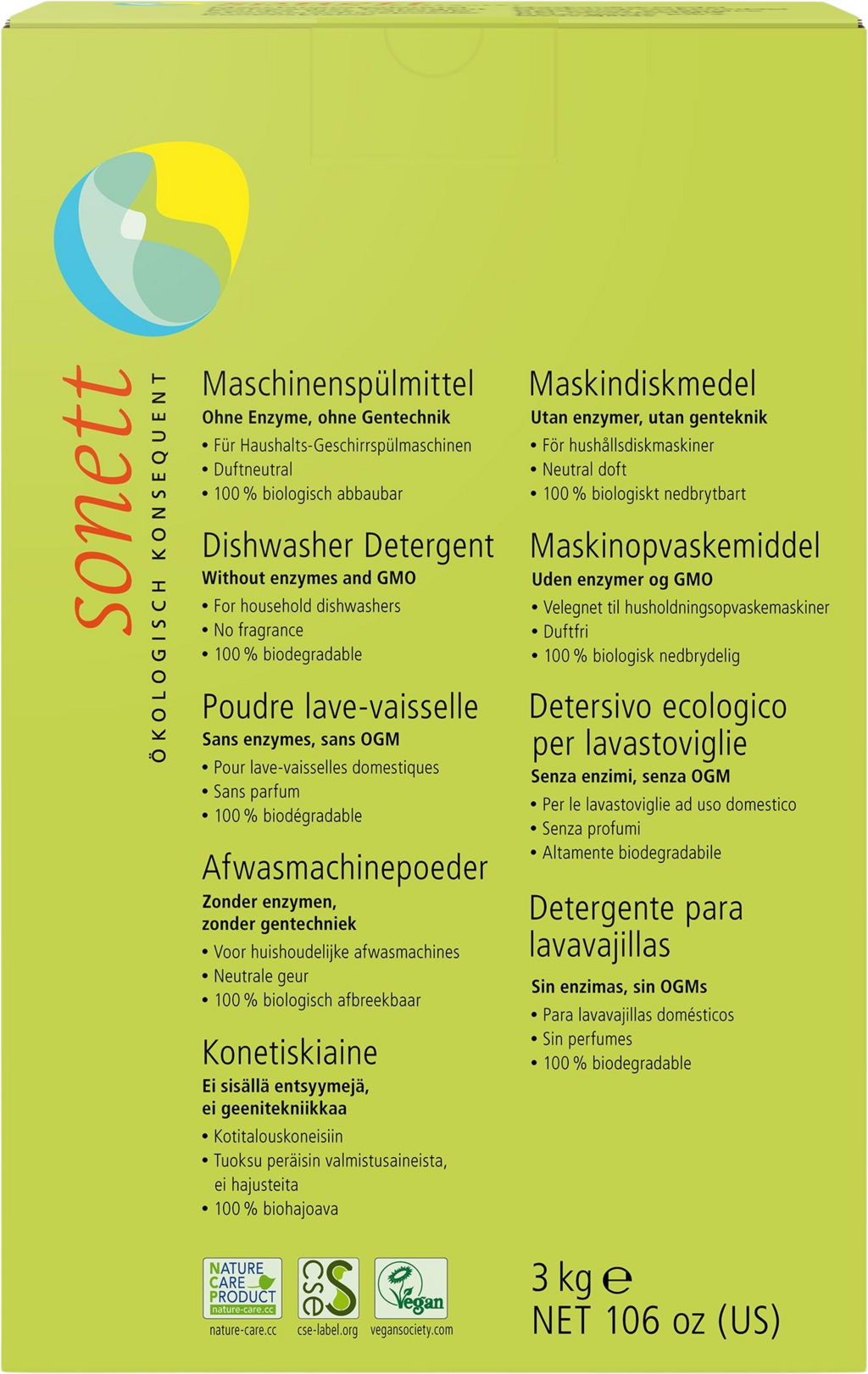 Sonett Ekologiczny proszek do zmywarki, 3 kg