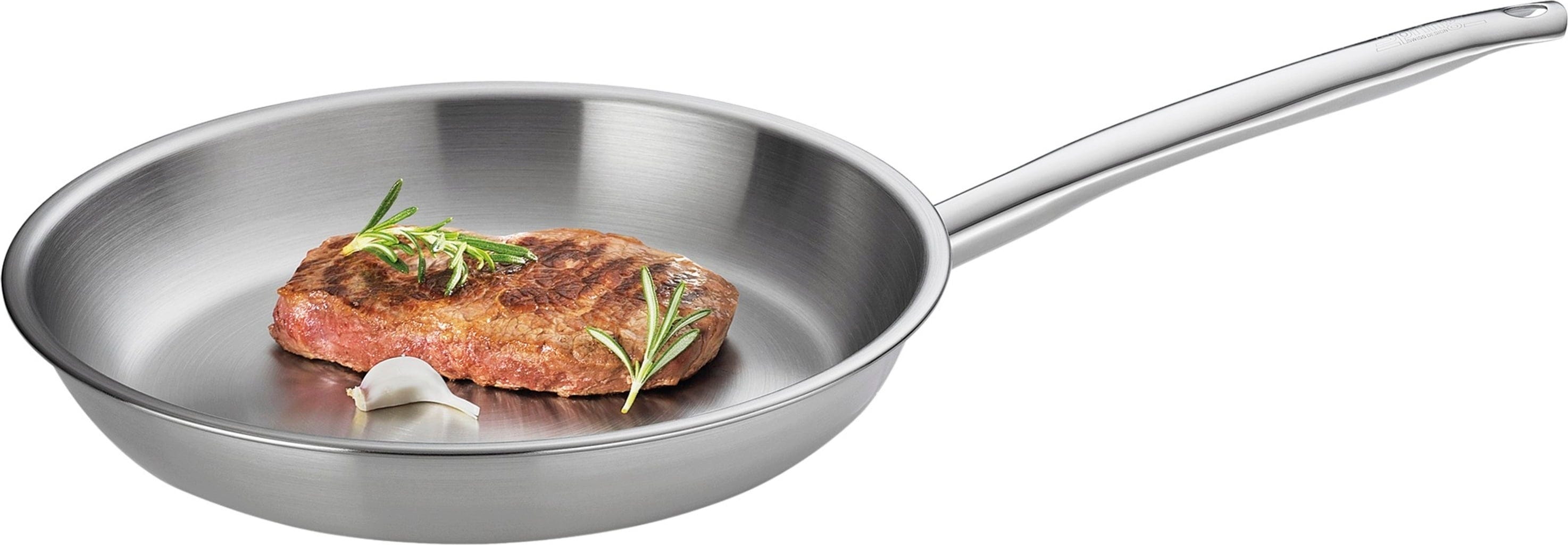 Estetyczny design i przyjemnie niska waga sprawiają, że patelnia idealnie nadaje się również jako naczynie do serwowania bezpośrednio na stole. Zamknięta krawędź naczynia skutecznie chroni przed korozją i wraz z wyprofilowanym brzegiem umożliwia precyzyjne wylewanie bez rozlewania. Czy to na indukcji, w piekarniku, czy podczas nieskomplikowanego mycia w zmywarce – ta patelnia łączy w sobie najwyższą funkcjonalność z ponadczasową elegancją w kulinarnej codzienności.
