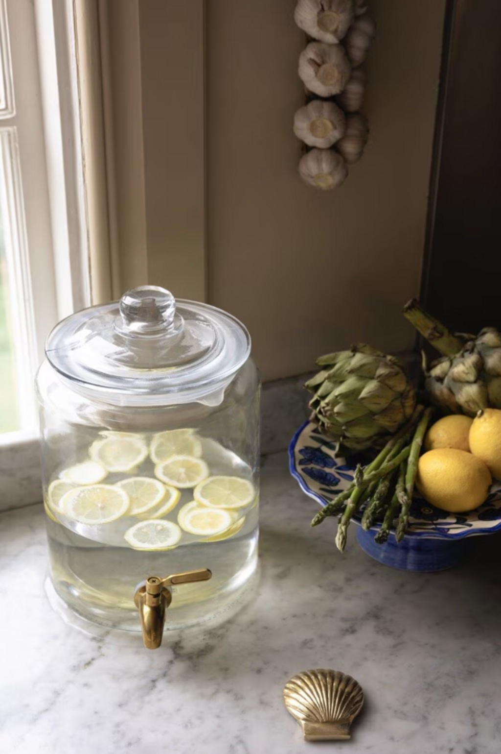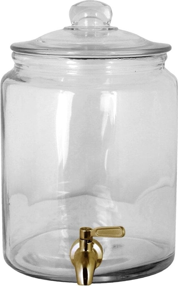 Ten szklany słoik z mosiężnym kranikiem idealnie nadaje się do napojów na przyjęciach, w ogrodzie lub podczas przytulnych wieczorów w domu. Szczelnie zamykana pokrywka utrzymuje świeżość napojów, a szeroki otwór ułatwia napełnianie i nalewanie. Praktyczny, stylowy i przyciągający wzrok na każdym stole.