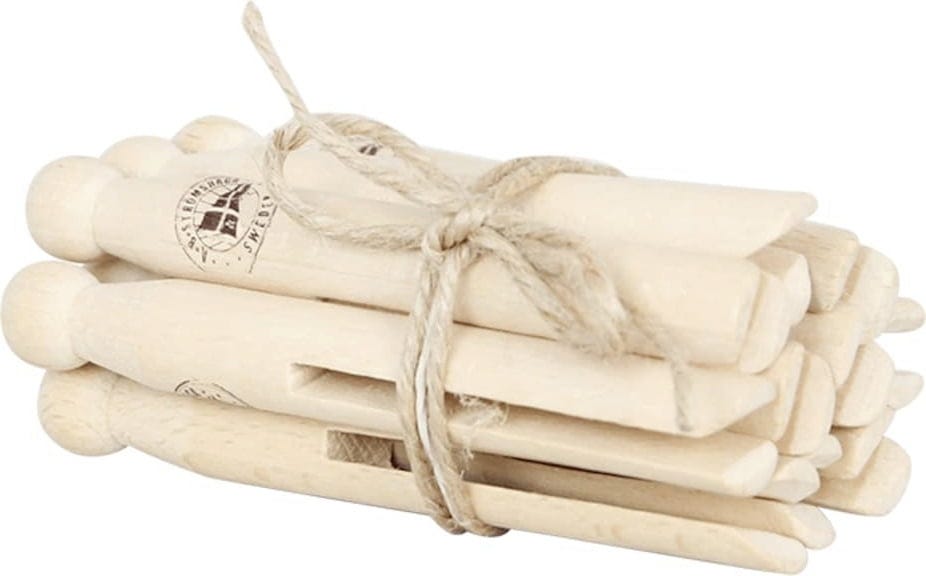 Dzięki tym spinaczom do prania w stylu vintage rozwieszanie prania stanie się prawdziwą przyjemnością. Zostały one wykonane z drewna bukowego, są łatwe do zastosowania i świetnie trzymają. Pranie pozostaje na swoim miejscu, dzięki czemu nawet podmuch wiatru nie jest w stanie zdmuchnąć go ze sznurka.