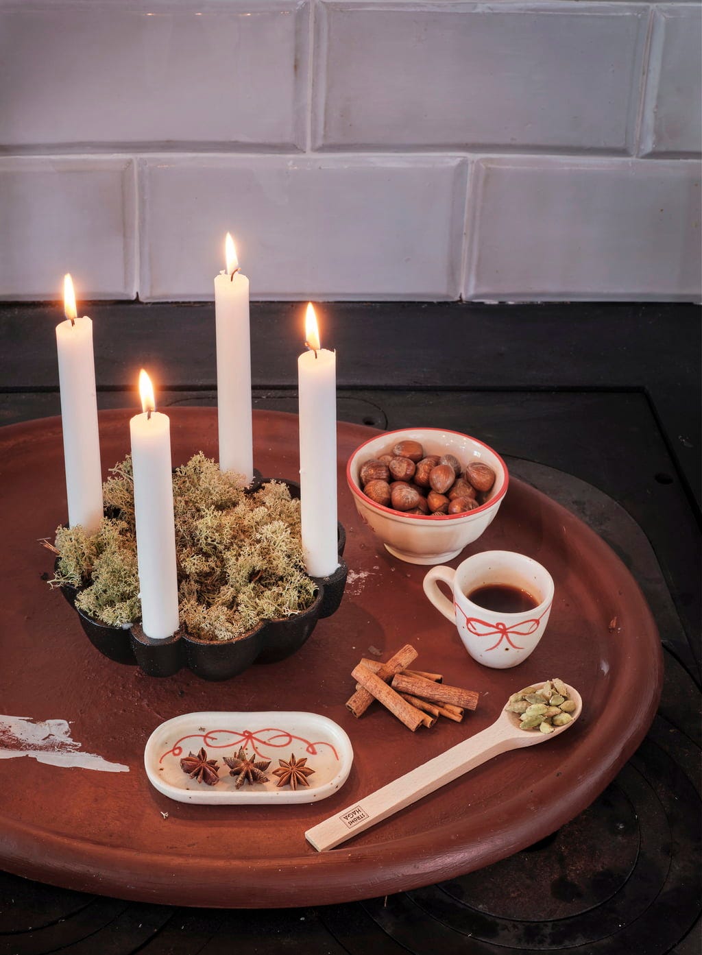 Dekoracyjna misa wykonana z czarnego żeliwa, która oferuje miejsce na cztery świeczki. Środek miski można indywidualnie i stale przeprojektowywać. Na przykład z mchem, kasztanami i małą ozdobną dynią, aby stworzyć harmonijną jesienną dekorację.
