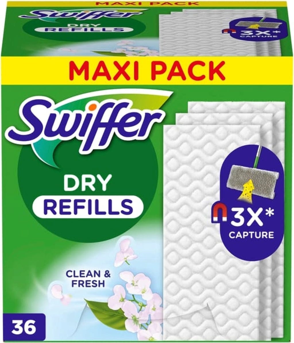 Swiffer Dry ściereczki do mopa, opakowanie uzupełniające (suche), 36 Szt. (36 sztuk)