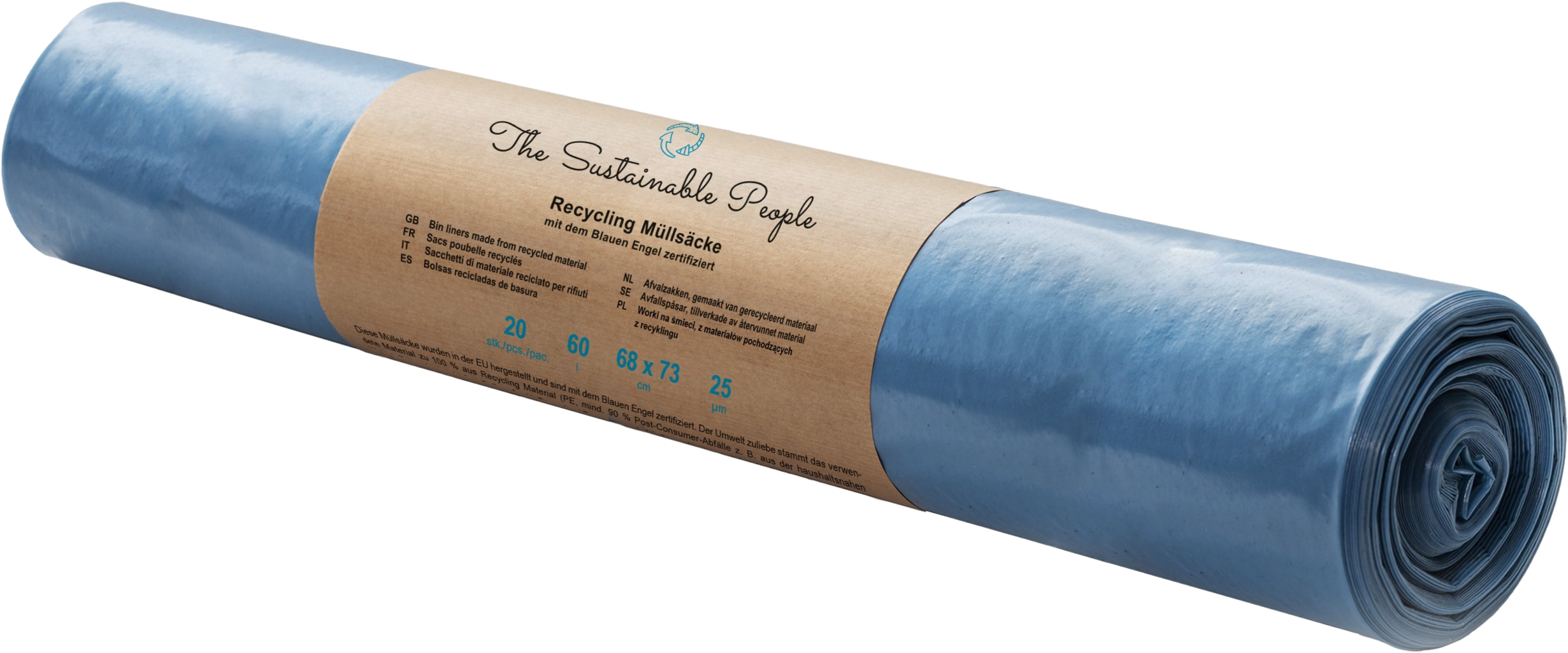 The Sustainable People Wytrzymałe worki na śmieci wykonane z materiałów pochodzących z recyklingu, Niebieski 60 L (20 sztuk)