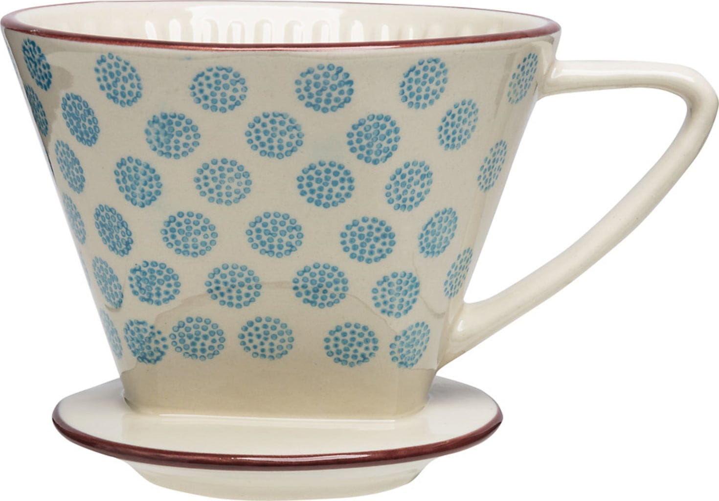 Dla wszystkich, którzy lubią parzyć kawę w sprawdzony, tradycyjny sposób, ten filtr do kawy będzie radosnym i kolorowym pomocnikiem. Wykonany jest z kamionki i został ręcznie ozdobiony stemplami.