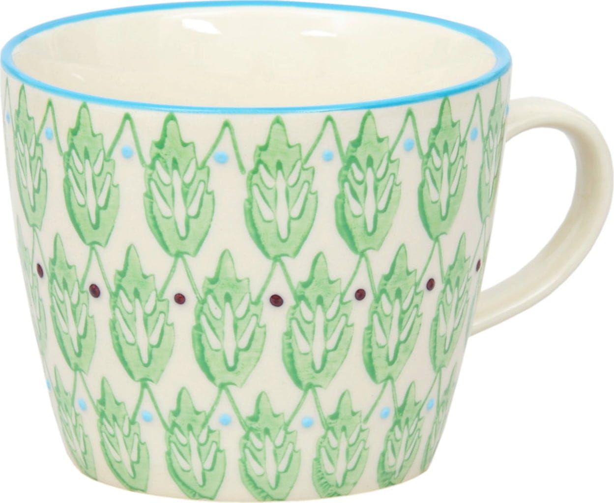 Zanurz się w świecie secesji z tym eleganckim kubkiem! Delikatny wzór został naniesiony ręcznie i nadaje kubkowi ponadczasowe piękno w połączeniu z delikatnymi pastelowymi kolorami. Wysokiej jakości ceramika jest wygodna w trzymaniu i nadaje się do mycia w zmywarce i używania w kuchence mikrofalowej. Czy to jako samodzielny element, czy w połączeniu z innymi naczyniami - ten kubek naprawdę przyciąga wzrok!