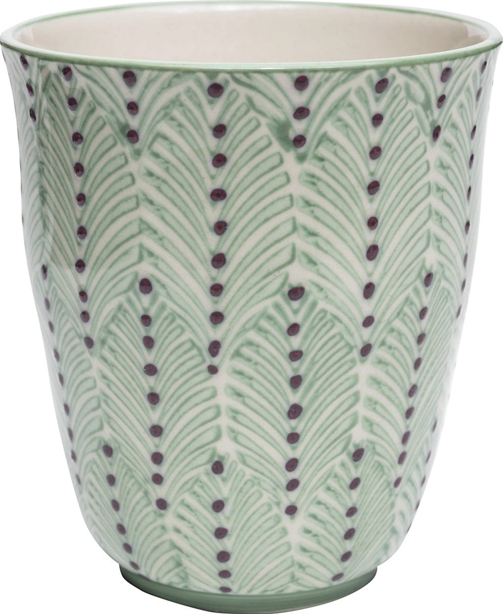 Linia Mix'n'Match została zaprojektowana tak, aby można ją było bez problemu łączyć z innymi naczyniami. Dotyczy to również tego zielonego kubka. Dobrze leży w dłoni i zachwyca indywidualnym, ręcznie stemplowanym nadrukiem.