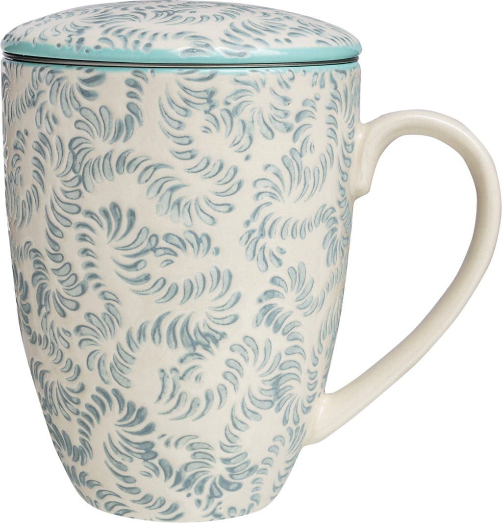 Podaruj sobie chwilę wytchnienia od codzienności dzięki temu kubkowi z wysokiej jakości kamionki! Ręcznie stemplowany wzór zachęca do marzeń, a przyjemna w dotyku faktura zapewnia relaksujące chwile przy herbacie. Zintegrowane sitko pozwala cieszyć się ulubioną herbatą w prosty sposób, bez uciążliwych liści. Praktyczna pokrywka dłużej utrzymuje temperaturę napoju, a po zaparzeniu służy jako podstawka pod sitko. Idealny prezent dla Ciebie lub bliskiej osoby!