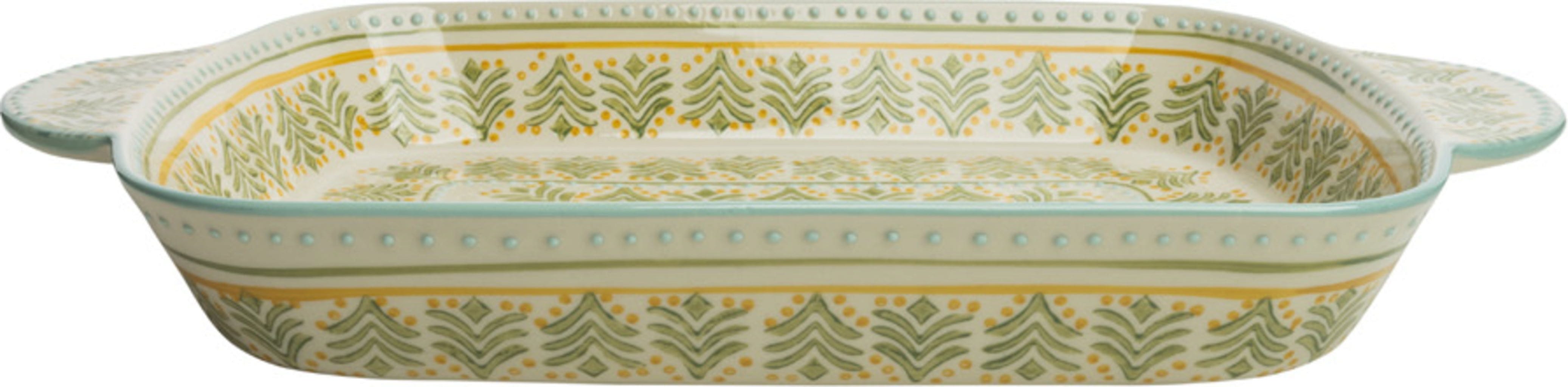 Dzięki temu naczyniu do zapiekania możesz przygotować duże porcje – dla rodziny lub gości. Oferuje ono nie tylko ponad dwa litry pojemności, ale także przyciąga wzrok dzięki ręcznie stemplowanemu wzornictwu w stylu retro. Jest ponadto wytrzymałe i trwałe, a także może być używane do serwowania potraw.