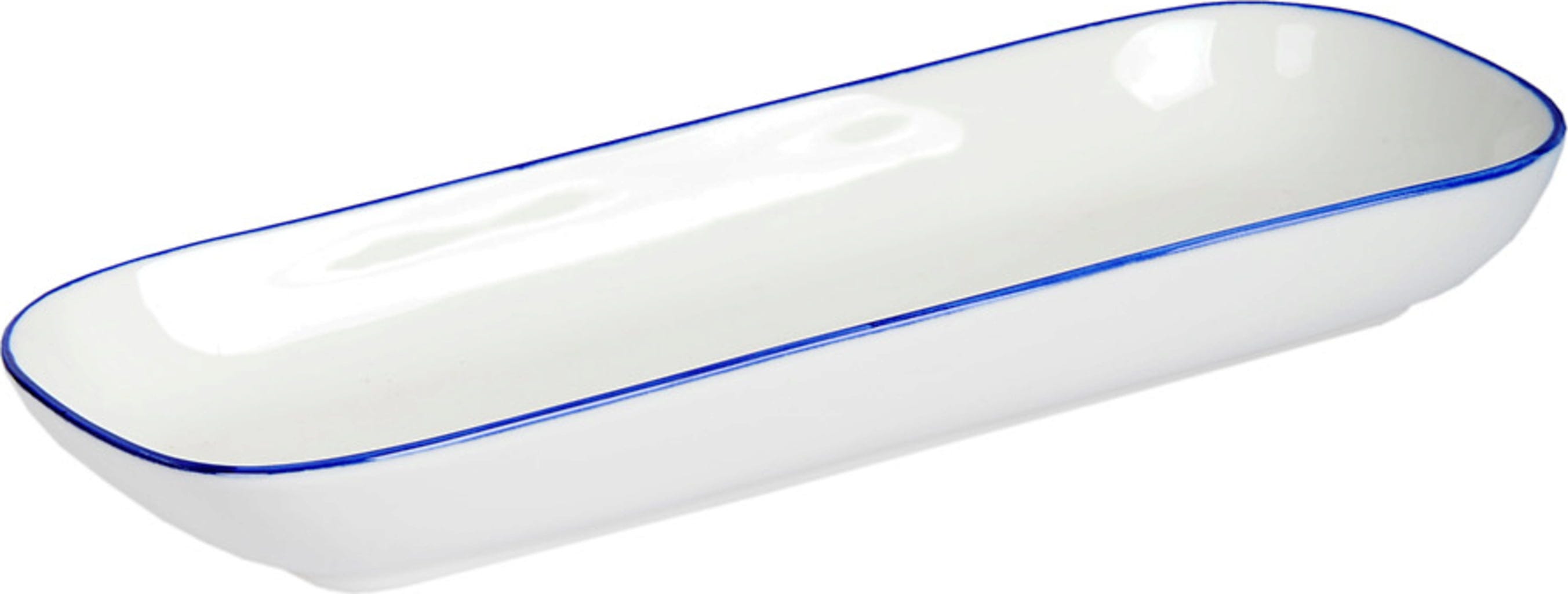Ten przepiękny porcelanowy półmisek został wykonany ręcznie i zachwyca swoim purystycznym designem, który jest wspaniale podkreślony przez subtelną, niebieską krawędź. Idealnie nadaje się do serwowania przystawek, dodatków lub pysznych deserów i wyczarowuje klasyczną, elegancką atmosferę na każdym nakrytym stole!