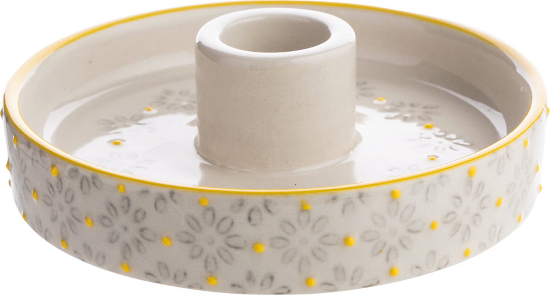 Świecznik łączy w sobie tradycyjne rzemiosło z klasycznym, fantazyjnym designem i funkcjonalnością. Wykonany z kamionki i ręcznie stemplowany, co nadaje mu nutę tradycji oraz wyrafinowania. Jako uchwyt na świecę stołową stanowi prawdziwą ozdobę Twojego domu.