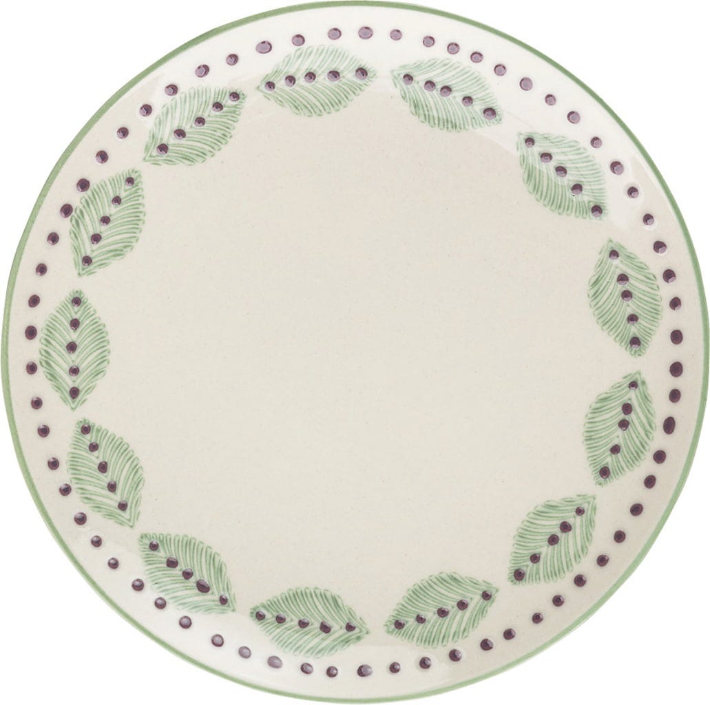 Te przepiękne talerze mają średnicę 16 cm, dzięki czemu idealnie nadają się na śniadanie lub pyszne desery! Radosny wzór w świeżej zieleni z ciemniejszymi akcentami został naniesiony ręcznie i zapewnia stylowe akcenty kolorystyczne w Twojej kuchni! Talerze można myć w zmywarce i używać w kuchence mikrofalowej.
