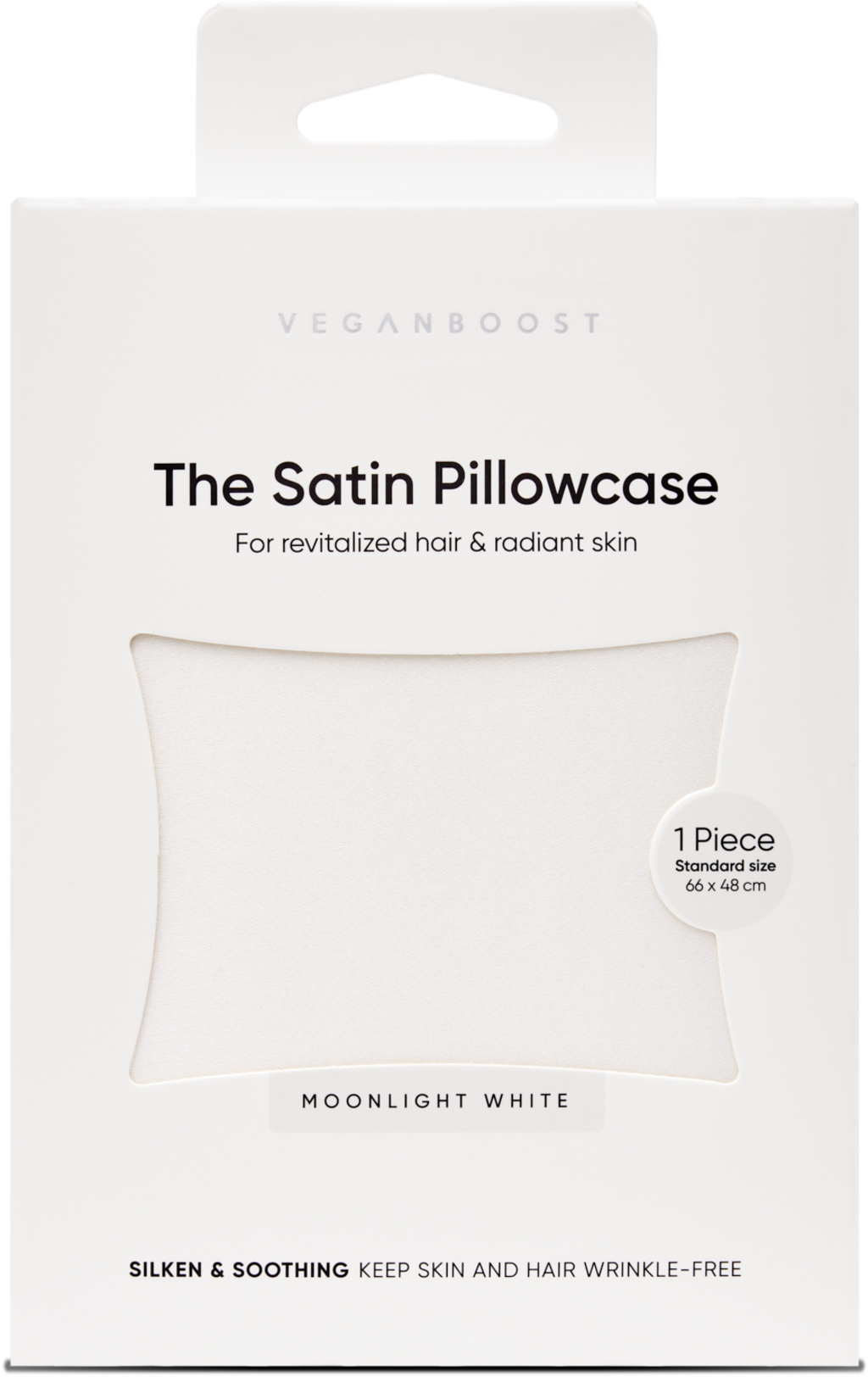 Satynowa poszewka na poduszkę marki Veganboost jest szczególnie jedwabiście miękka i w 100% wegańska. Satynowa tkanina jest delikatna dla włosów i skóry.