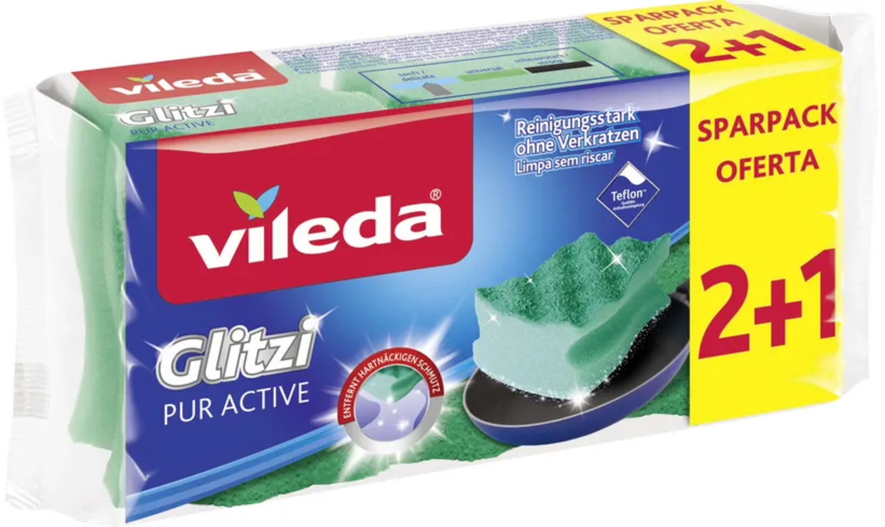 Vileda Glitzi Pur Active gąbka do mycia naczyń, 3 Szt. (3 sztuk)