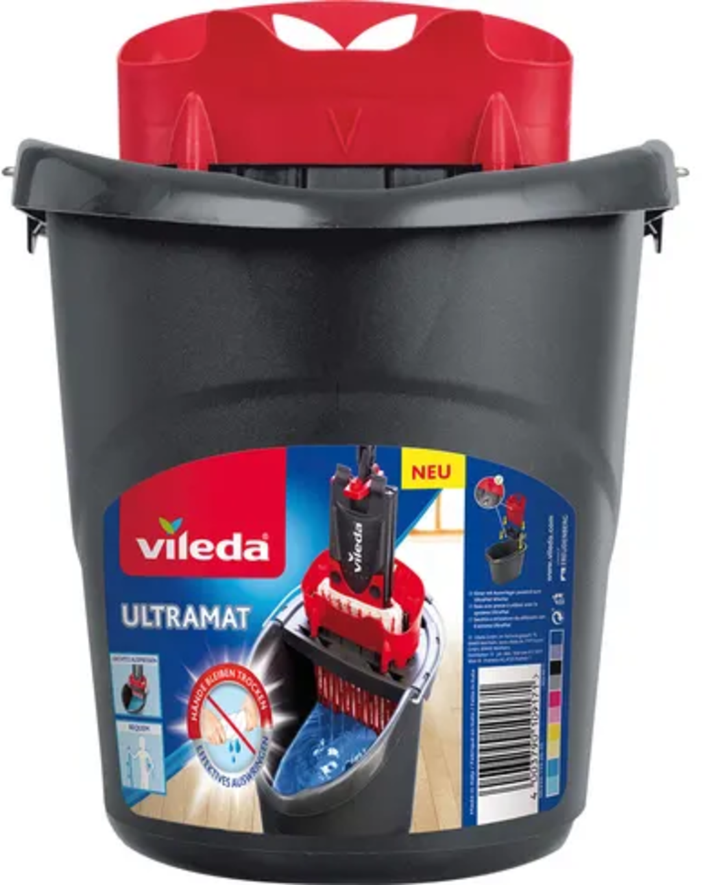 Dzięki wiaderku Ultramat firmy vileda można bez wysiłku wykręcić nakładkę do mycia podłóg Ultramax. Dzięki temu ręce pozostają suche i czyste podczas czyszczenia podłogi.