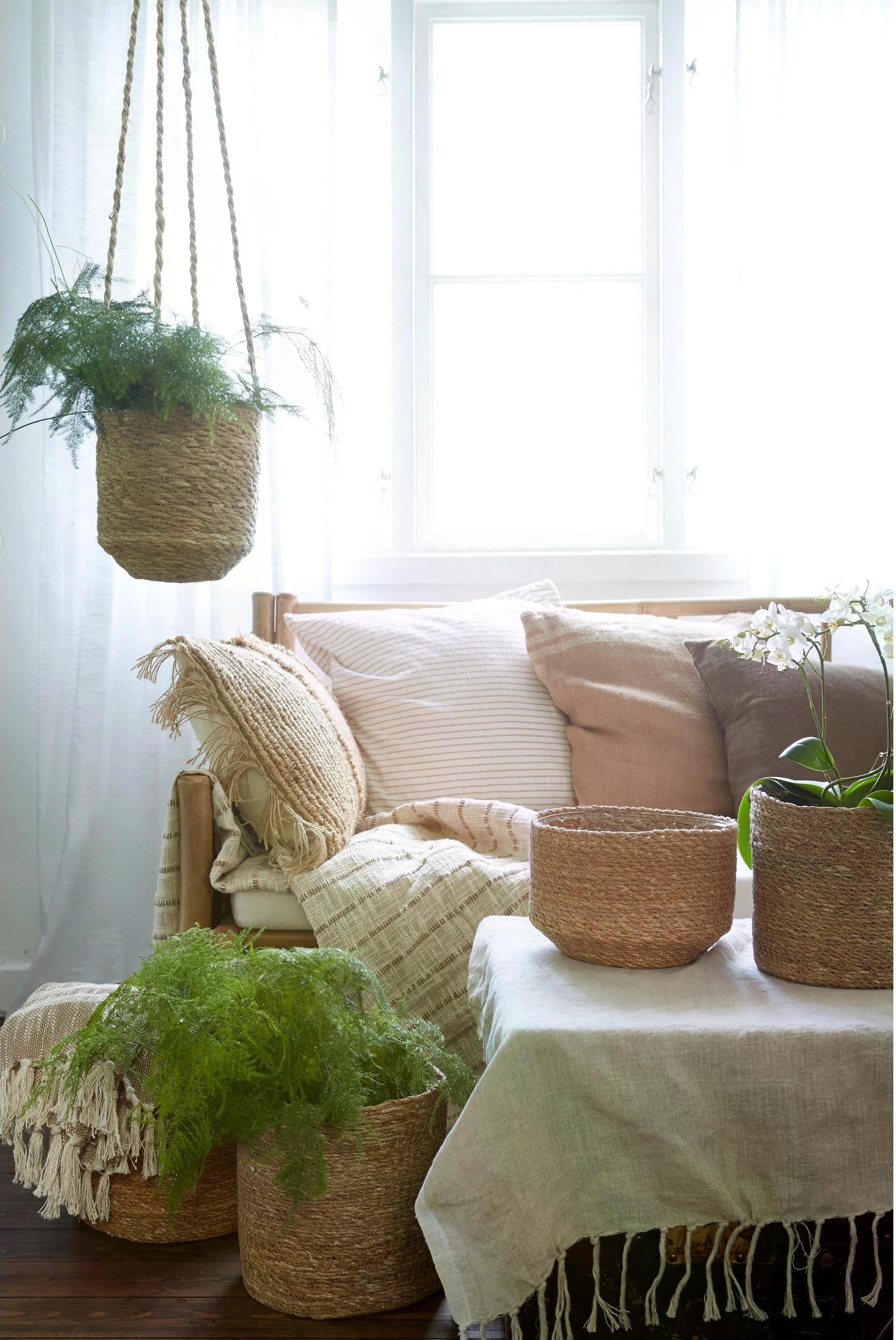 Ten pleciony kosz wiszący z trawy morskiej zachwyci Cię swoim uroczym szykiem boho i będzie idealnym dodatkiem do stylowych, przytulnych wnętrz.