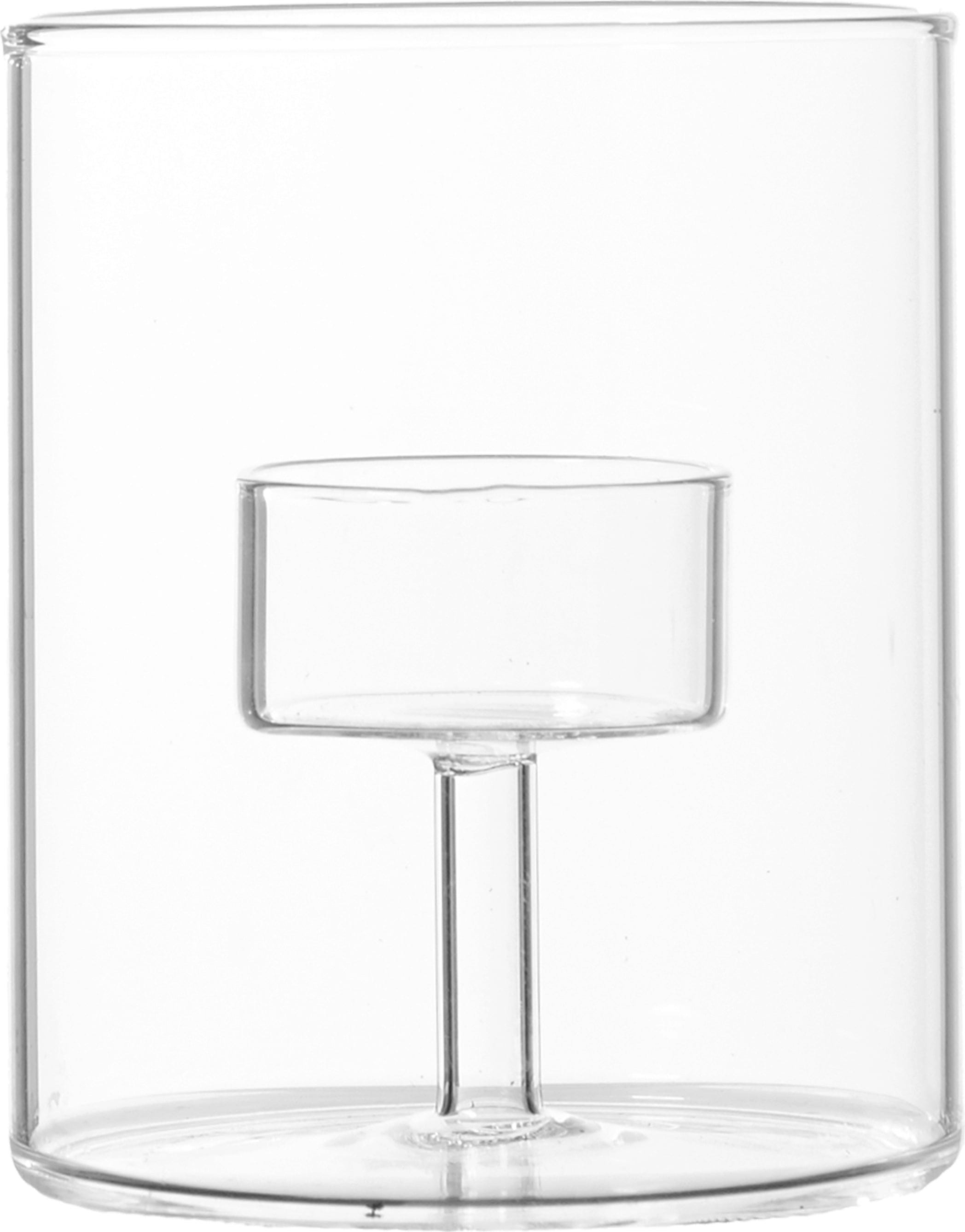 Ten elegancki świecznik na tealight z przezroczystego szkła łączy nowoczesny design z romantycznym blaskiem świec i jest idealnym dodatkiem do minimalistycznych wnętrz.