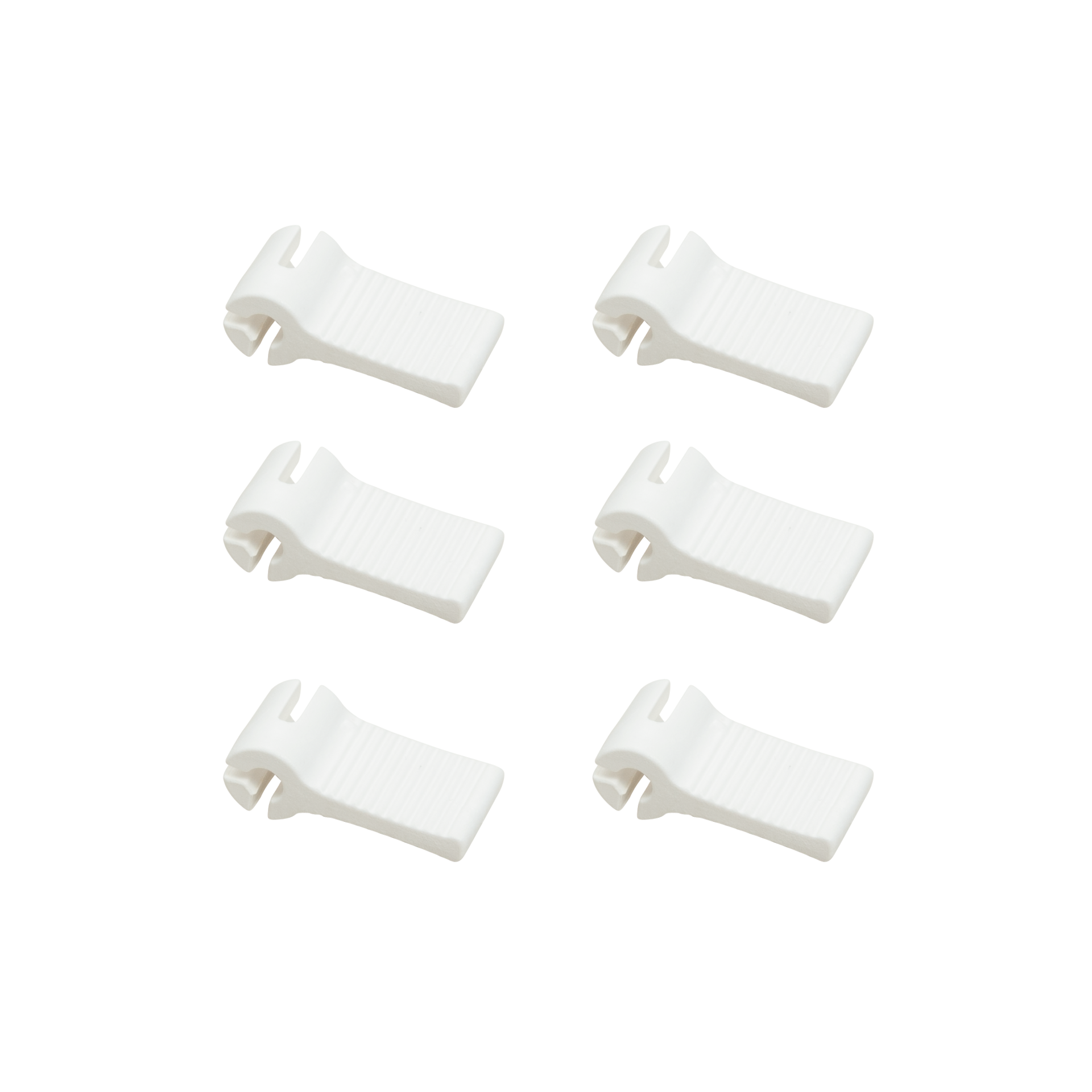 Idealne akcesorium do mocowania żagla przeciwsłonecznego. Haczyki zaciskowe montuje się na linie ze stali nierdzewnej pomiędzy haczykami ślizgowymi. Wykonane z tworzywa sztucznego odpornego na warunki atmosferyczne.