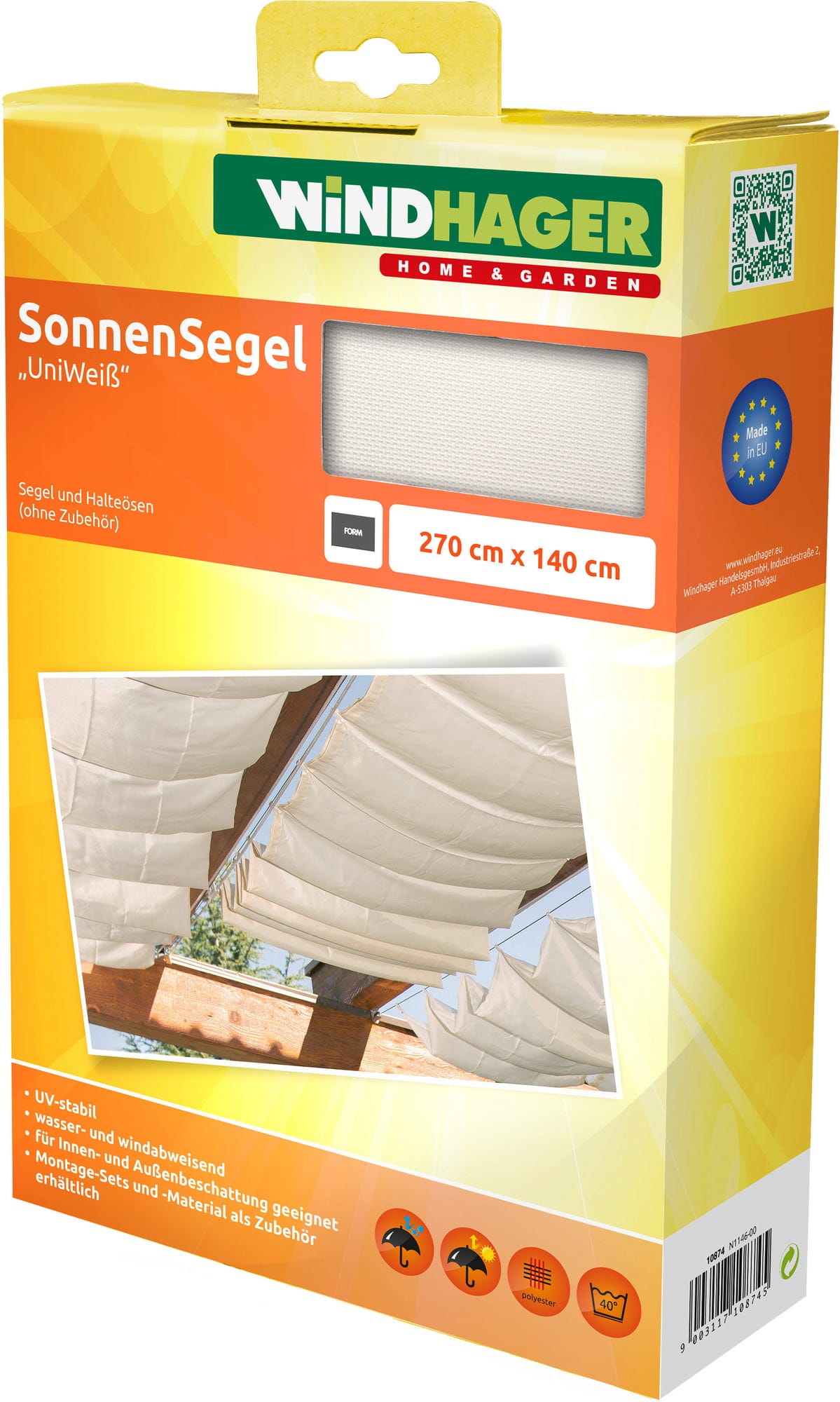Ten żagiel przeciwsłoneczny to estetyczne, odporne na promieniowanie UV rozwiązanie zacieniające tarasy, balkony, ogrody zimowe i inne miejsca, pozwalające cieszyć się ulubionym kącikiem o każdej porze. Dzięki jasnej i lekkiej tkaninie żagiel tworzy wyjątkowo przyjemną atmosferę.