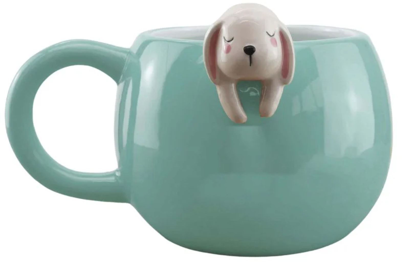 Uszy jeszcze opadają, oczy są zamknięte. Zaspany króliczek zwisa z krawędzi kubka, podczas gdy ten jest już używany do picia herbaty, kawy lub kakao. Uroczy dodatek na miły początek dnia!
