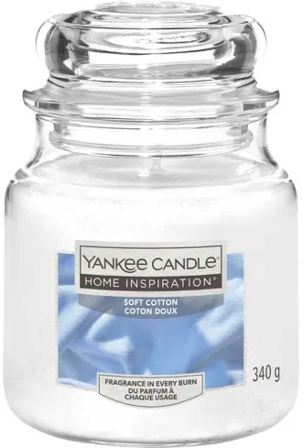 Yankee Candle Home Inspiration - Świeca zapachowa w słoiku Soft Cotton, Medium (340 g)