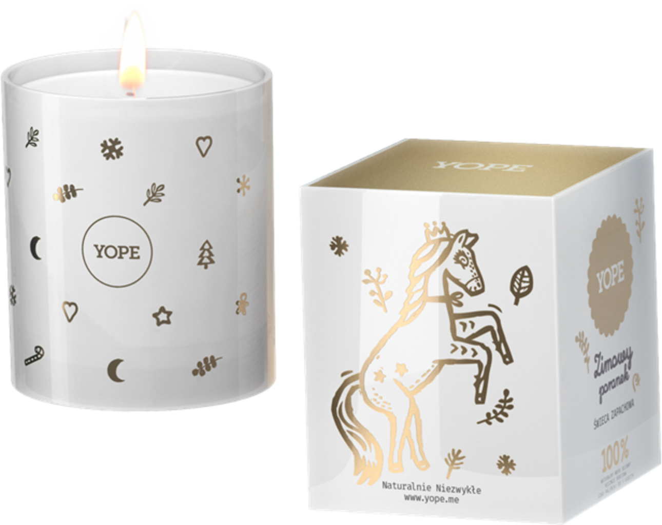 Świeca zapachowa Zimowy poranek od YOPE jest wykonana w 100% z wosku sojowego i roztacza w domu delikatny zapach wanilii i fiołka. Ponieważ wosk sojowy ma niską temperaturę topnienia, świeca pali się wyjątkowo długo.