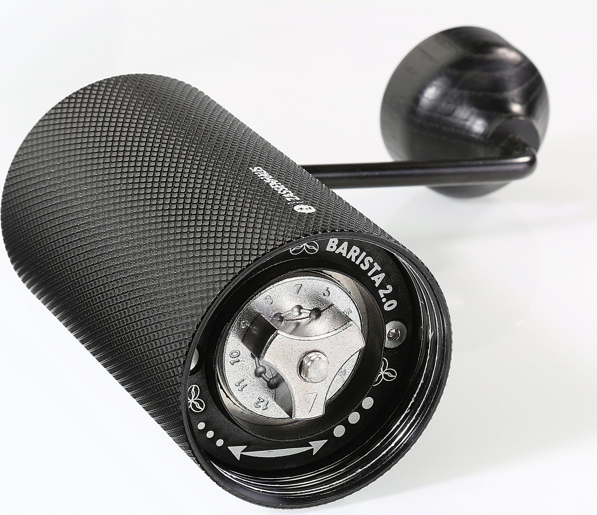 Młynek do kawy BARISTA 2.0 firmy Zassenhaus mieli ziarna kawy bezstopniowo od espresso do kawy filtrowanej. Mielenie jest łatwe dzięki wrzecionu z łożyskiem kulkowym. Zestaw zawiera szklany pojemnik z pokrywką, aby zachować świeżość, dodatkowy pojemnik, torbę do przechowywania i szczotkę do czyszczenia.